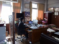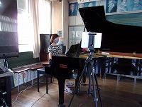 音楽室から配信されるピアノの音色に合わせて各学級で校歌斉唱も行いました。