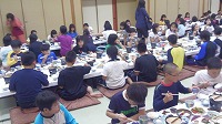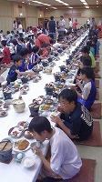 地曳網体験が終わり、ホテルに戻ると入浴タイム!大きなお風呂にみんながつかり、疲れもいっきに吹き飛びました。この後は、豪勢な夕食です。