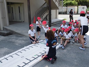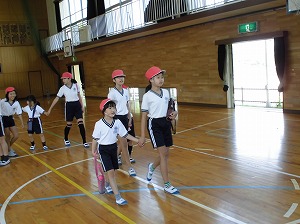 6年生は、1年生をしっかりエスコートしながら、運動場や体育館を移動していました。