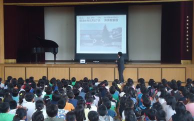 最初に、田辺小学校の歴史について校長先生からお話を聞きました。