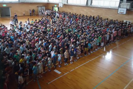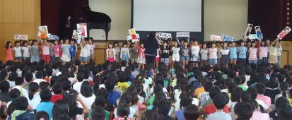 その後、全校児童で創立記念の歌を歌い、