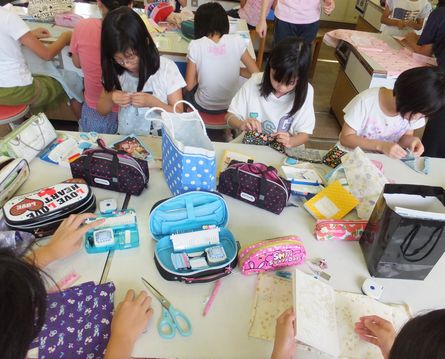 また、家庭科クラブでは裁縫をしてブックカバーを作っています。