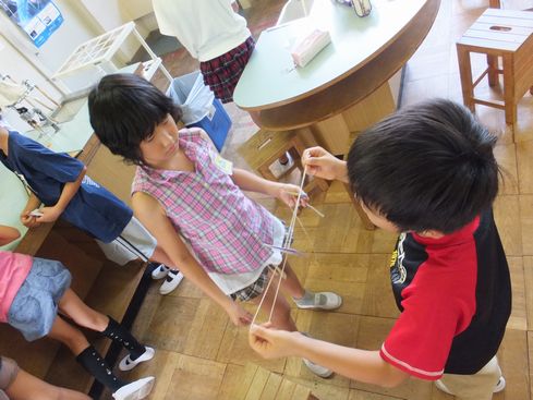 科学クラブは「ぶんぶんゴマ」作りをしました。