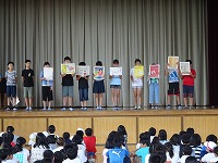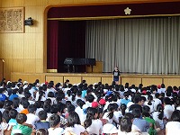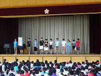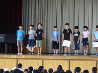 9月18日(月)の朝学習の時間に9月のほほえみ集会を行いました。運営委員の「始めの言葉」の後に体育委員、運営委員、給食委員からの話がありました。