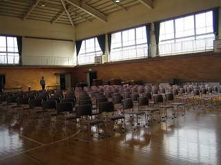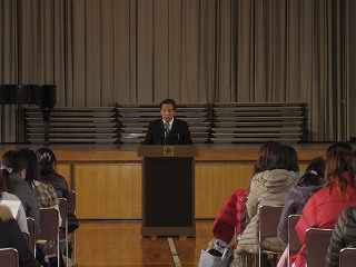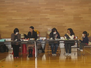 本校校長が学校の概要について説明した後、主幹教諭から入学時に必要な物等のくわしい説明、続いて養護教諭から子どもの成長や学校生活リズム、食育、給食に関する説明、事務職員からの諸経費等の説明が約1時間にわたって行われました。
