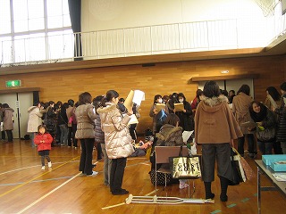 PTA本部のコーナーでは、「学校ではこんなものを使います」というテーマで、実際に使っている給食袋や体操服、お道具箱等を展示し、新米のお母さんからの質問に優しく答えていただきました。