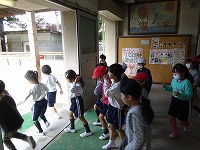 今回は、避難訓練がある日時を子どもたちに伝えずに行い、子どもたち自身が自分で考え判断し、避難する訓練を行いました。