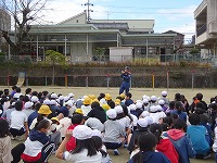 消防署の方から、訓練時の「揺れがおさまるまで机の下にもぐるなど自分の身を守る行動をとりましょう」という放送の指示を聞かずにいた児童がいたこと、訓練とはいえ「自分の命を守るための行動」を児童一人一人がしっかりと考えていくことが大切であるなどの話をしていただきました。