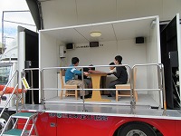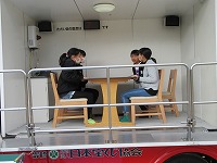 また、避難訓練の後、6年生児童は起震車でおおきな揺れを伴う地震の体験をしました。