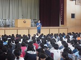 校長先生の話の後は、安全担当の先生からゴールデンウィーク中の過ごし方や交通ルールを守ることの大切さについての話、生徒指導の先生から今月の月目標「きまりある学校生活をしよう」についての話がありました。