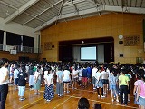 初めに校長先生から、地震発生時の行動や熱中症予防についての話がありました。