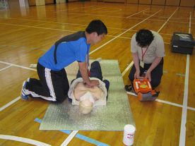 人口呼吸の方法やAEDの使い方など、