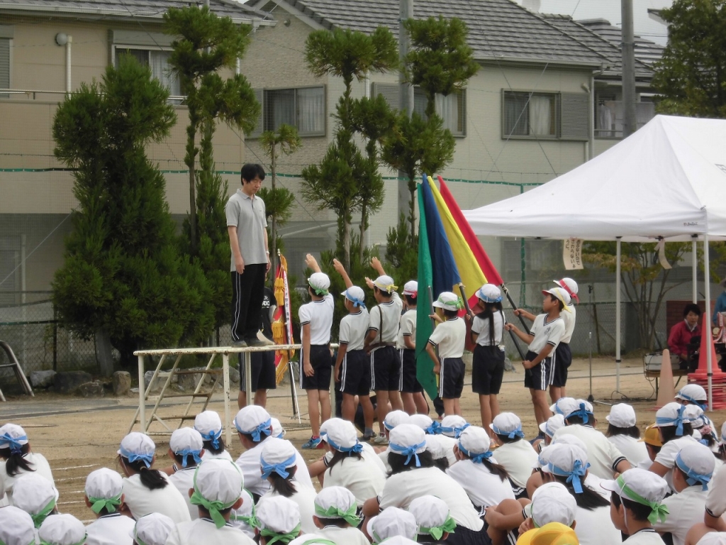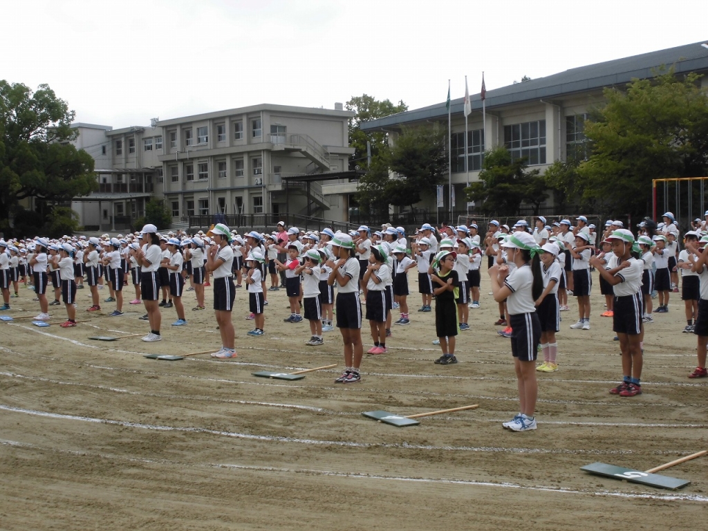 9月21日、雨が上がり涼しい気候に恵まれ、運動会予行練習(開会式、応援練習、閉会式の通し練習)