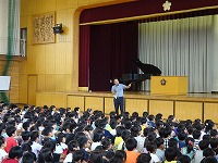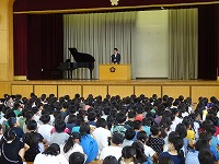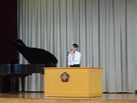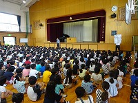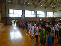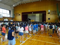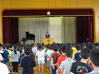 校歌を歌ったあと、校長先生から夏休みには①事件や事故に巻きこまれないように注意すること②熱中症に気をつけること③夏休みにしかできないことにチャレンジしてほしいと3つのことについての話がありました。