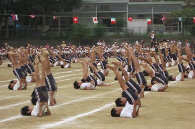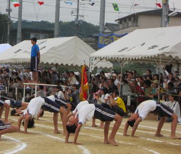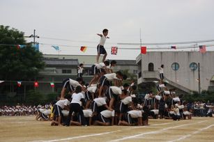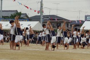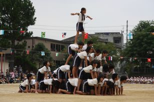 運動会の最後を飾ったのは、5・6年生の団体演技は組体操「一心不乱」。