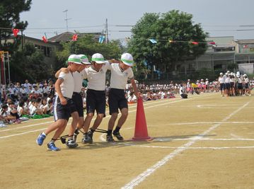 団体競技は3人4脚のリレーをしました。