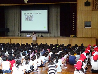 続いて、特別支援教育担当から、くすの木学級への理解を深める学習をしました。