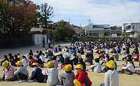 11月5日(木)、京田辺市のシェイクアウト訓練に合わせ、本校でもシェイクアウト訓練を行いました。生駒断層帯による巨大地震で京田辺市も大きな揺れ、被害が発生したことを想定した訓練で、二次災害を防ぐために運動場へ速やかに避難しました。