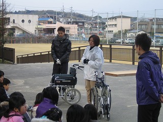 福祉協議会の方から肢体不自由の方についてのお話や、車いすの乗り方、介助の仕方など丁寧に教えていただきました。
