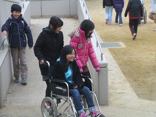 その後、グループ毎に車いす体験を行いました。