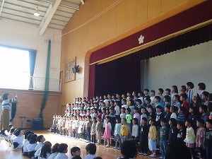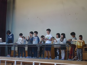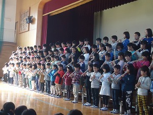 日常の学習活動のまとめとして、その成果を学年ごとに発表する。また、発表を聞く態度を身に付けるとともに、各学年の発表のよさを味わうことをねらいとして2・3時間目に発表会を行いました。