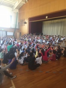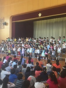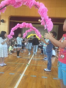 6年生が1年生の手をつないでの入場で始まり、ゲーム、歌などで楽しみました。1年生からのお礼の出し物は、とってもかわいらしかったです。(早く田辺小学校の生活に慣れてもらいたいです。)