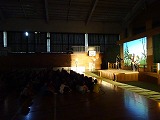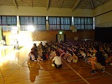 1・2時間目には1~3年生が「三枚のお札」の影絵劇を、3・4時間目は4~6年生が「かぐや姫」の影絵劇を鑑賞しました。劇の前には影絵体験のワークショップがあり、子どもたちや教員が影絵体験をしました。