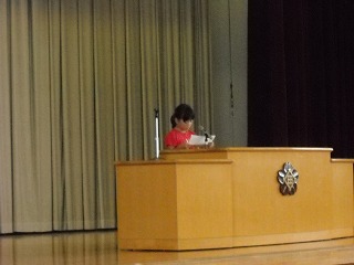 やましろ教育局主催「読書大好きフェスタ」で朗読発表する児童が全校児童の前で、発