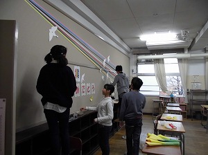 3月21日、5年生を中心に、卒業式の前日準備を行いました。