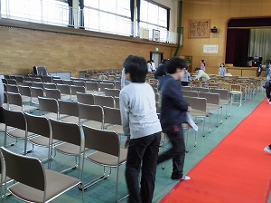 各自の分担場所で、それぞれの担当の先生の話をしっかり聞いて、卒業式の準備を