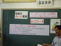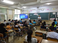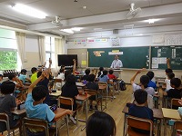 6月26日(水)の3校時、5年生と6年生の児童を対象に「非行防止教室」を行いました。スクールサポーターの方々に講師に来て頂き、ルールやきまりを守る大切さについて学びました。 講師の方からは、各教室でフリップなどを使い、クイズも交えながら、「やって良いこと、悪いことの違いを理解し、いつも正しい行動ができる人になろう」という、生活していく中でとても大事な話をしていただきました。児童にとって、とても貴重な経験になったと感じます。