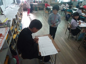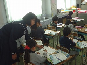 1年生の教室では、丸つけの補助や算数、国語の補助を行いました。