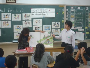 6年生の教室では、特に外国語活動で、英語絵本の読み聞かせに挑戦し中学生らしさを発揮しました。また、図工、体育(ハードル走)の補助も行いました。