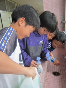 保健委員は、手洗い場のハンドソープの