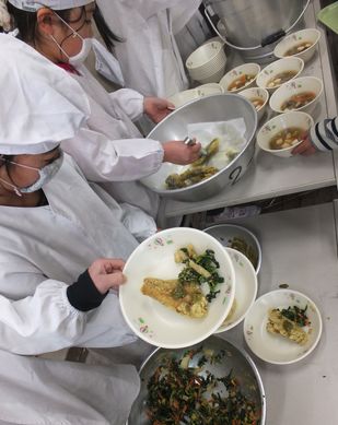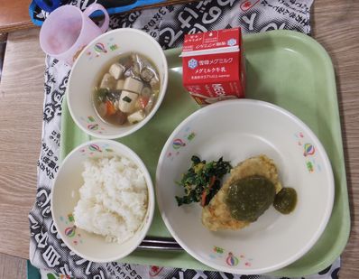 1月24日の給食は『揚げ鰆の抹茶味噌田楽』でした。