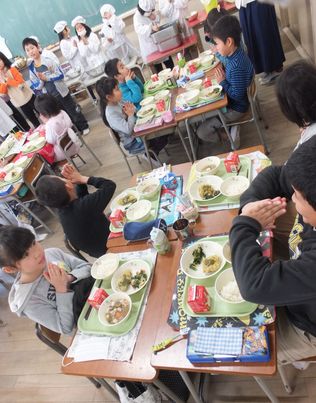 給食調理師や栄養教諭に感謝の気持ちを伝えたりする取組を展開しています。