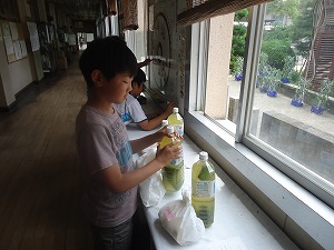 ペットボトルに入った玉露を各教室へ