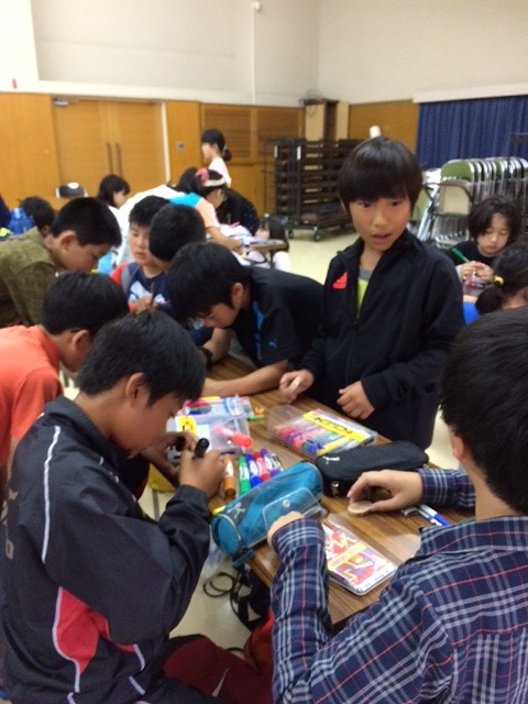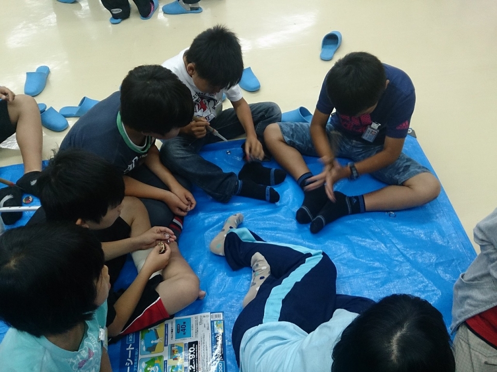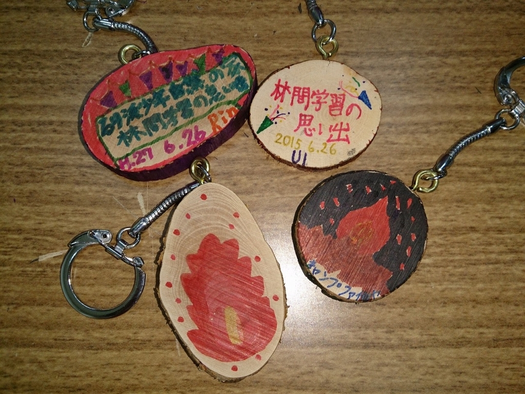 雨天のためクイズラリーは中止し、屋内でクラフト制作(キーホルダー作り)をしました。