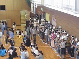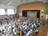 まずは5年生の「アンパンマン・ドラえもん」のリコーダー演奏の中、6年生のお兄さん、お姉さんに手をつながれて1年生の入場です。