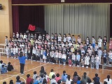 シルエットクイズの次は2年生から6年生「歓迎の呼びかけ」を行い、いよいよ本日の主役の1年生の合唱「さんぽ」です。