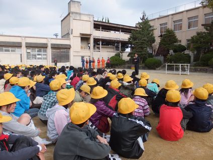 子どもたちは、担任の指示に従って避難の練習をしました。