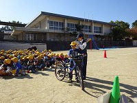 10月26日(金)2・3校時に田辺警察署の方、3年生PTA学級委員の皆様にお越しいただき、3・5年生の交通教室を行いました。
