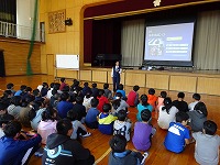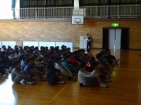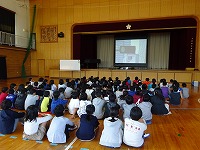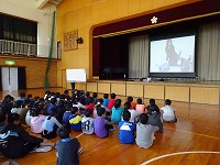 5年生は体育館で自転車の交通ルールをDVD教材を見ながら学習しました。