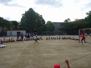 児童のシュートも軽々セーブ どんだけボールを落とさずにできるかな?