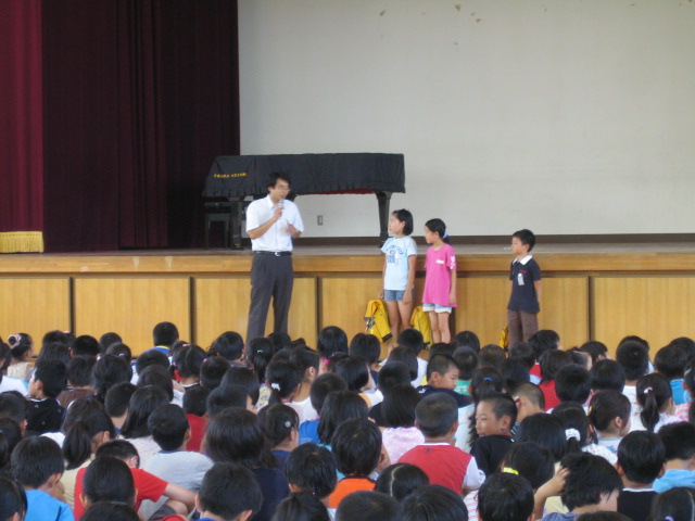われました。実際に学校敷地内に不審者が現れたという想定で、全職員の共通確認の下、全校児童が速やかに行動することができ、警察の方からも褒めて頂きました。