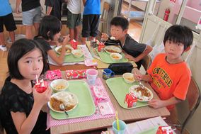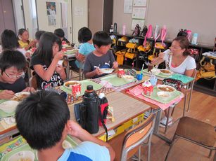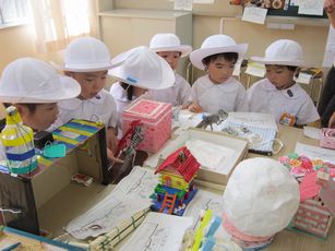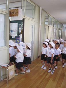 目を輝かせてお兄さんお姉さんの作品を鑑賞していました。