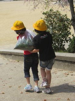 石拾いや雑草ぬきをして汗を流しました。