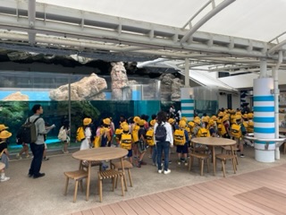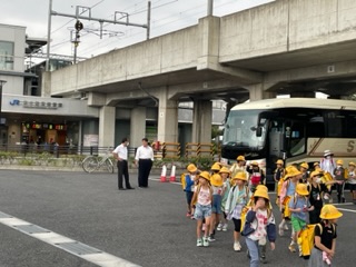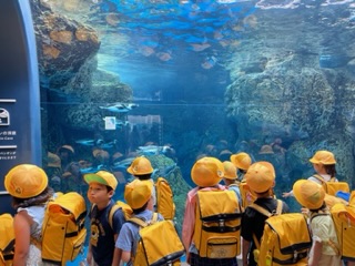 小学生になり、初めてバスに乗っての校外学習です。先生の話をしっかり聞き、学級で行動したり、グループで活動したりして楽しみました。