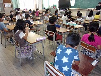 校長先生からは1学期の振り返りや、夏休みの過ごし方に係わって「学習面で苦手なところを補う・戦争について知る・新型コロナウイルス感染症に気を付けながら安全に過ごす」等についての話がありました。