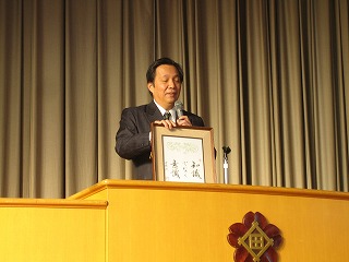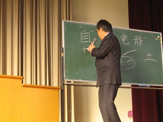 そして、一枚の色紙を子ども達に見せ、今年の抱負について話しました。